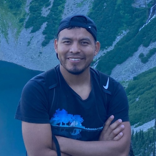 Headshot of Katarina Vargas, a multiracial woman with brown hair standing in front of scenic mountains